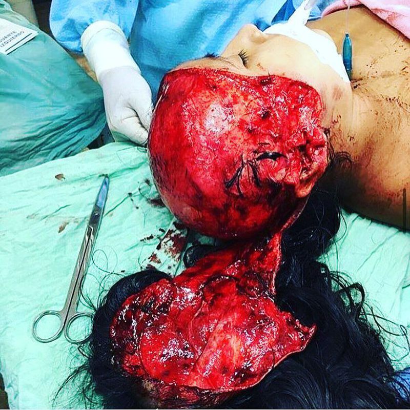 Total scalp avulsion is a rare but potentially devastating traumatic injury. It most commonly results from the entrapment of long hair in high-speed rotary parts of industrial machinery, although it has also occurred as a result of dogbites and assaults. Due to sharp force applied, these injuries tend to follow similar lines of least resistance along the insertions of the frontalis and temporalis muscles anteriorly, and the occipitalis muscle posteriorly. When tearing through the skin above these insertions, the avulsed portion may include the eyebrows as well as all or part of the ears that goes deep enough to include some parts of the periosteum. When treated properly, very good reconstructive results can be achieved. There are various methods of replantation of the scalp with vascular repair by reanastomosis of the arteries or veins that have been torn to achieves a sufficient arterial reperfusion.