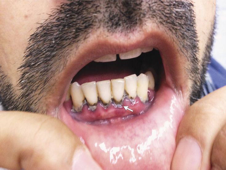 A 39-year-old man presented to the emergency department with a 4-week history of increasing abdominal pain and constipation. Physical examination of the abdomen and the results on abdominal imaging, including ultrasonography and computed tomography, were normal. Laboratory investigations revealed a hemoglobin level of 12.5 g per deciliter (normal range, 14.0 to 17.5). Findings on upper endoscopy and colonoscopy were normal. Since the cause of the gastrointestinal symptoms was unclear, laboratory investigations for porphyria were performed. A 24-hour urine test showed an excretion level of delta aminolevulinic acid of 545 μmol per day (normal range, <49), and the lead level in blood was markedly elevated at 136 μg per deciliter (6.55 μmol per liter). Physical examination was repeated, and a gray line along the margins of the lower gums, known as Burton’s line, was noted (arrow). Burton’s line is a sign of chronic lead intoxication that develops when lead reacts with oral bacteria metabolites. The patient then confirmed a 10-year history of chewing opium. Analysis of a sample of the patient’s opium revealed a lead concentration of 17 mg per 1 g of opium. Lead may sometimes be added to opium to increase its weight when it is sold. The patient was treated with chelating agents and was counseled about the importance of oral hygiene; he also stopped chewing opium. At follow-up 7 months after the initiation of treatment, the patient’s abdominal pain and constipation had resolved, and Burton’s line was markedly diminished. Friederike Helmich, M.D. Guntram Lock, M.D. Albertinen-Krankenhaus, Hamburg, Germany source: nejm.org