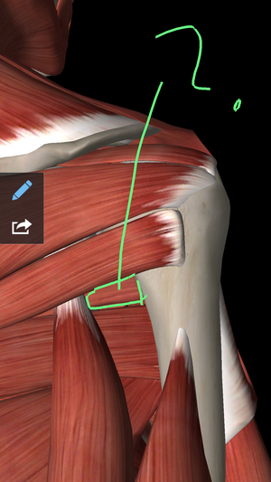 This is the quadrangular space.. Boundaries: Superior:Subscapularis(actually anteriorly),inferior border of teres minor. Inferior:Superior boundary of teres major. Medial:Lateral border of long head of triceps brachii. Lateral:Medial border of surgical neck of humerus.