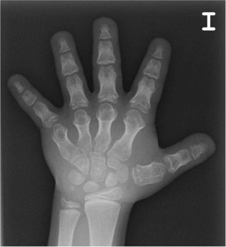 Acrodysostosis is a rare genetic disorder characterized by skeletal malformations, growth delays, short stature, and distinctive facial features caused, in part, by underdeveloped (hypoplastic) of certain facial bones, particularly those in the middle portion of the face. A characteristic symptom is abnormally small hands and feet with short, stubby fingers and toes that may affect all or some of the fingers and toes. Some affected children have varying degrees of intellectual disability; in other children intelligence is unaffected. Some children experience resistance to certain hormones, which means that the tissues of the body do not respond to the hormone in question despite normal or high activity levels of the hormone. Acrodysostosis may be caused by mutations in the PRKAR1A gene (type 1) or the PDE4D gene (type 2). These mutations usually occur sporadically without a positive family history; mutations in PDE4D can be inherited in an autosomal dominant manner. It is likely that additional forms of acrodysostosis exist; caused by as-yet-unidentified gene mutations.
