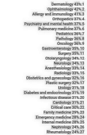Happiness% According to SpecialityTag the Happiest Docs... #MedscapeStudy