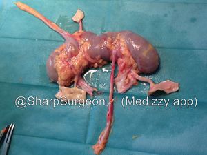 Caecum with appendix and appendicular artery and iliocaecal valve and mesoappendix