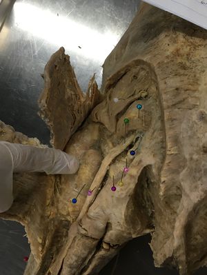 En esta imagen podemos ver algunas de las estructuras que conforman la Reg glútea. Se observa M Glúteo Mayor, M Glúteo Medio, M Piriforme, M Gemelo Sup, M Obturador Interno, M Gemelo inferior, M cuadrado Femoral y el N Ciático