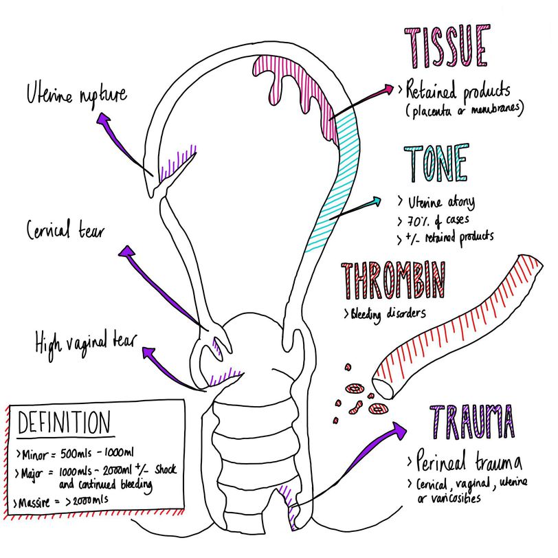 Remember the 4 T's - trauma, tone, tissue, thrombin!