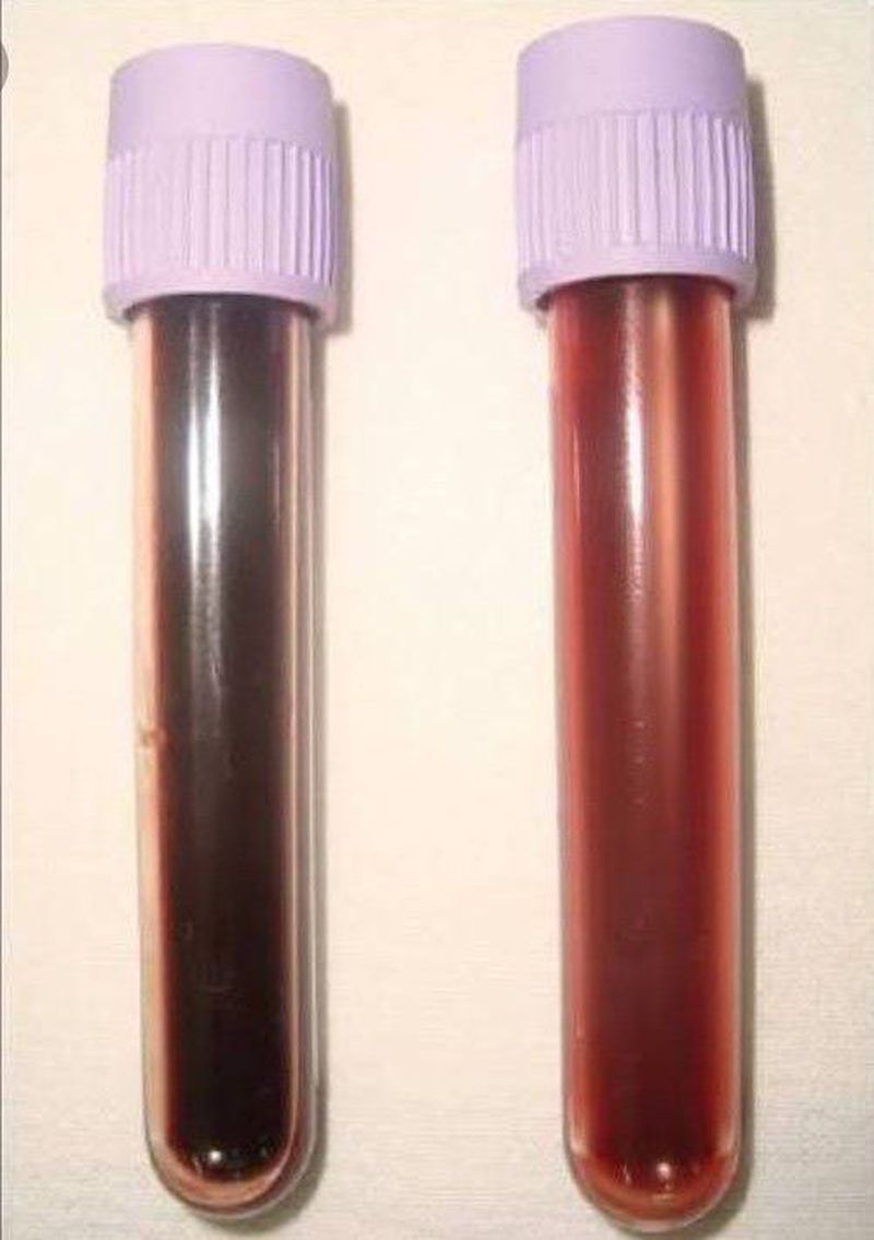 In methemoglobinemia, these oxidative drugs cause hemoglobin to convert into methemoglobin. Methemoglobin is dark brown so it gives the blood the chocolate colour, and it can't carry O2 properly. I had never seen a proper sample of this :D thnx