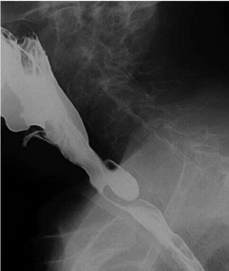 The above shown is a fluoroscopic image of hypopharyngeal pouch A midesophageal diverticulum is caused by inflammation located in the chest cavity outside the esophagus that pulls on theesophagus or is caused by esophagealmotility disorders. When a diverticulum increases in size, the following symptoms may appear: Dysphagia (difficulty swallowing) Regurgitation (return of undigested food back into the mouth) Sense of a lump in the neck. Halitosis (smelly breath) due to stagnant food in the pouch.đ¤đ¤đ¤ Cough, especially at night.Hoarseness (voice change) Sometimes pneumonia toođ¤