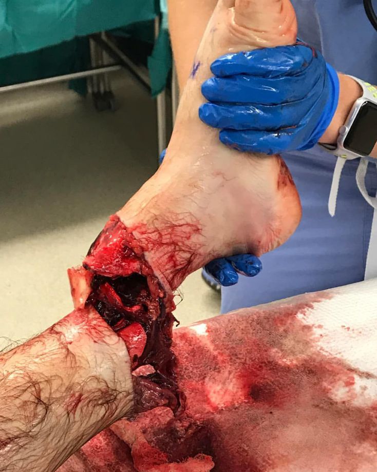Patient was going 60mph when he slid and his ankle hit a stop sign. Surprisingly, he had pulses going into surgery but ended up amputating a week later due to infection. Sub-amputation of the limbs is typically the result of high energy traumas with a combination of crushing, traction and bending forces. The skin is often peeled, with wide loss of substance caused by avulsion or ischemia. The fascial compartments are often partially opened because of explosion or laceration and the muscular tissues are locally and regionally damaged by direct and indirect lesions. The decision to amputate or save the severely lesioned lower limb is difficult. Attempts at quantifying the severity of the trauma and to establish numeral guidelines in order to decide to amputate or save a limb have been suggested by several authors. The score systems of lower limbs include the Mangled Extremity Severity Score (MESS), where age, shock, contamination level and treatment time are some of the deciding factors. Credit: codebrownRN