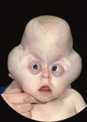 Cloverleaf skull refers to a type of severe craniosynostosis which gives the skull a cloverleaf shape. It is very rare, with less than 130 case reports globally. It typically results from intrauterine premature closure of sagittal, coronal and lambdoid sutures, through which the cranial contents bulge, giving rise to the characteristic trilobate shape.. It is usually seen in the context of the following conditions: 1. thanatophoric dysplasia2. severe Apert syndrome3. severe Crouzon syndrome4. Boston-type craniosynostosis5. Carpenter syndrome