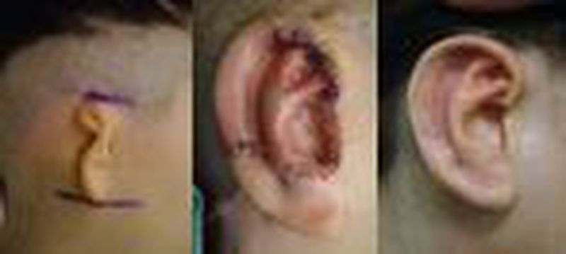 Ear reconstruction surgery explained: stage 1: The first stage involves creating a skin pocket at the site of the ear by reshaping the available tissue and thinning the skin to mimic the ear skin. Rib cartilage is then harvested in three pieces. The rib cartilage is carved and wired together with fine stainless steel wire to produce a very detailed ear structure. The structure is then inserted in the pocket and gentle suction is applied to enable the skin and the ear structure to come together. This stage of ear surgery takes 4-6 hours and the expected length of stay in hospital is 5-7 days. Ear Reconstruction surgery explained: stage 2: At the second stage the new ear needs to be put into position so it sticks out from the head like a normal ear would. The new ear is lifted into place with a piece of cartilage behind it to support its position. A flap of tissue and a skin graft is then taken to cover exposed cartilage and compete the process. The second stage takes 3-4 hours and the expected hospital stay is 2-3 days. Ear reconstruction surgery has a high success rate with over 90% patients grading the result as good or excellent. However, some patients, such as those with scarring or a low hairline, may be less suitable for ear correction surgery and will need to speak to a specialist. The alternative: ear correction with prosthetic ears The alternative to ear reconstruction or correction surgery is a prosthetic ear, which is clipped onto titanium pins inserted into the skull. The disadvantages of a prosthetic ear are that it needs to be removed daily for cleaning, it can be accidentally unclipped, and patients can suffer from pin complications or poor colour match. The advantage is that it is a simpler operation compared with ear reconstruction surgery. For ear birth defects, also known as microtia, ear surgery is usually deferred until the age of nine or above.