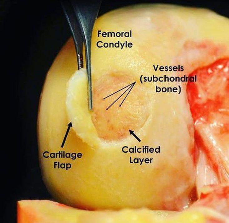 Lesion in the cartilage. Cartilage is avascular therefore it doesnt have a strong capacity to heal.