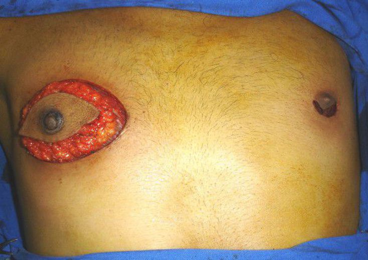 of infiltration into the dermis, which was reported in the present case. Treatment strategies for male breast cancer are not basedondatafromrandomizedclinicalstudiesinmen and most treatment recommendations are extrapolated from data in women [8]. Men with breast carcinoma have a poor prognosis, especially in the younger age group, because most breast enlargements in young men are dismissed as gyneco- mastia [9,10]. This potential misdiagnosis can result in an unnecessary delay in treatment. The median age of breast cancer diagnosis in men is approximately 65 years old [11]. Reports of breast cancer in young male patients are rare. Nielsen and Jakobsen described a breast cancer case in a 32-year-old man [12]. More recently, an invasive cancer case was reported in a 30-year-old patient [9]. In 2008, Chang et al. described the case of a 16-year-old male with unilateral ductal carcinoma in situ and gynecomastia [13]. There is a close relation between the BRCA2 gene mutation and male breast cancer. It has also been observed, however, that some cases involve BRCA1 participation [14-16]. Other conditions that have been associated with the occurrence of breast neoplasms in men are cirrhosis [17], testicular trauma, obesity, radia- tion therapy exposure, and the use of exogenous estro- gen [18]. In addition to the very young age of the patient in the present report, this patient did not have a family, hormonal, or genetic history that could justify the high risk for breast cancer. Although gynecomastia has been suggested to be present in 6-38% of breast cancer cases in men [19], it was not evident in our patient. It is fundamental to consider the history of breast tumors in first-degree relatives because that can be an indicator for increased breast cancer risk. Indeed, genetic diseases such as Klinefelter’ssyndromeand Cowden’s disease have been shown to be related to breast cancer in men [1]. There is no evidence that suggests that all men need breast magnetic nuclear resonance imaging (MRI). But suspicious MRI lesions in the contralateral breast should be examined. Furthermore, male breast cancer survivors have an increased risk of developing a second primary