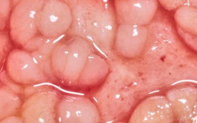 Polypoid polyps look like a mushroom, but flop around inside the intestine because they are attached to the lining of the colon by a thin stalk. Sessile polyps do not have a stalk, and are attached to the lining by a broad base.