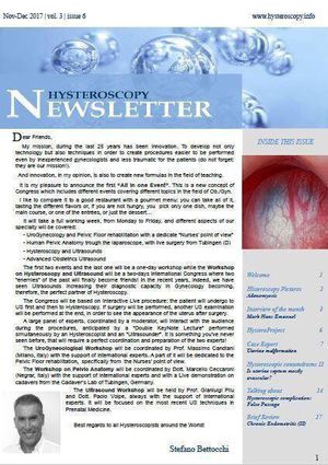From the team of editors of Hysteroscopy Newsletter, we are pleased to inform you that the latest issue of our publication is ready and available for you to enjoy. Hysteroscopy Newsletter it’s a window to the world of hysteroscopy. www.hysteroscopy.info