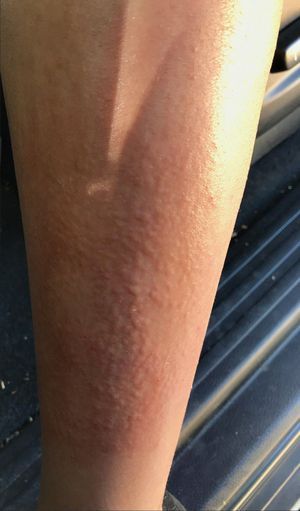 Does anyone have a clue as to what this is? The patient says it feels like fire ants are repetitively biting her all over the infected area. It is swollen and hurts to the touch.