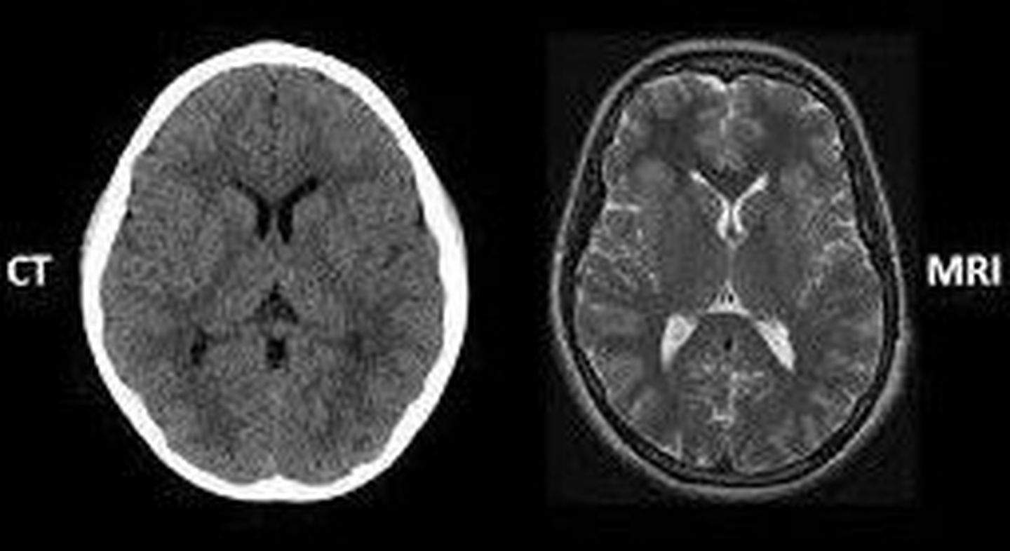 How to differentiate between ct and MRI of brain 1- in MRI Imaging you can see details of bain tissue but in CT Scan you cant and in CT you just see some Gray and White thigns 2- in CT Scan The Bony Skull is prominent White But in MRI it is not like this 3- in CT Scan Brain Tissue Appears as Tight Attached to The White Bone But in MRI Image, There is a Black Space Around Brain