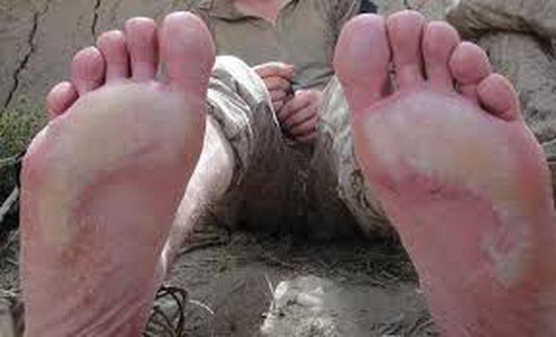 It occurs when the feet are wet for long periods of time (days or weeks) Skin is red then turns purple or blue with tingling and itching sensation. Blisters may develop and in sever cases gangrene may develop.