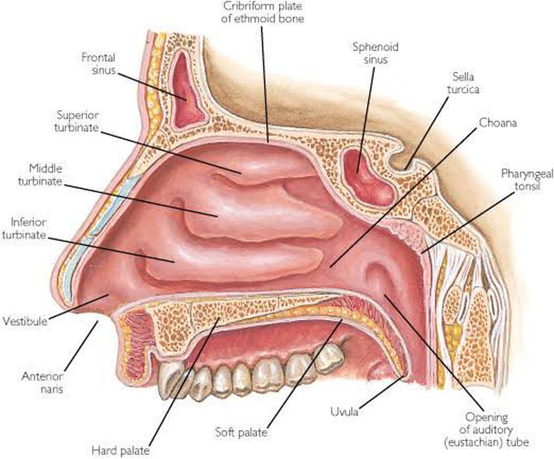 Actually below Inferior turbinate or conchae ! Between anterior 2/3rd and posterior 1/3rd
