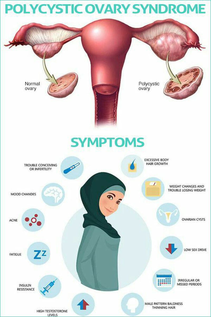 Polycystic ovary syndrome (PCOS) is a hormonal disorder common among women of reproductive age. Women with PCOS may have infrequent or prolonged menstrual periods or excess male hormone (androgen) levels. The ovaries may develop numerous small collections of fluid (follicles) and fail to regularly release eggs. The exact cause of PCOS isn't known. Factors that might play a role include: ▪Excess insulin. Insulin is the hormone produced in the pancreas that allows cells to use sugar, your body's primary energy supply. If your cells become resistant to the action of insulin, then your blood sugar levels can rise and your body might produce more insulin. Excess insulin might increase androgen production, causing difficulty with ovulation. ▪Low-grade inflammation. This term is used to describe white blood cells' production of substances to fight infection. Research has shown that women with PCOS have a type of low-grade inflammation that stimulates polycystic ovaries to produce androgens, which can lead to heart and blood vessel problems. Heredity. Research suggests that certain genes might be linked to PCOS. ▪Excess androgen. The ovaries produce abnormally high levels of androgen, resulting in hirsutism and acne. Complications of PCOS can include: •Infertility •Gestational diabetes or pregnancy-induced high blood pressure •Miscarriage or premature birth •Nonalcoholic steatohepatitis — a severe liver inflammation caused by fat accumulation in the liver •Metabolic syndrome — a cluster of conditions including high blood pressure, high blood sugar, and abnormal cholesterol or triglyceride levels that significantly increase your risk of cardiovascular disease •Type 2 diabetes or prediabetes •Sleep apnea •Depression, anxiety and eating disorders •Abnormal uterine bleeding •Cancer of the uterine lining (endometrial cancer)