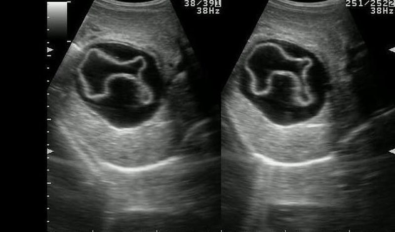 It is the USG appearance of hydatid cyst. The inner layer of cyst may separate from outer layer & appears as a Serpentine structure inside of cyst.