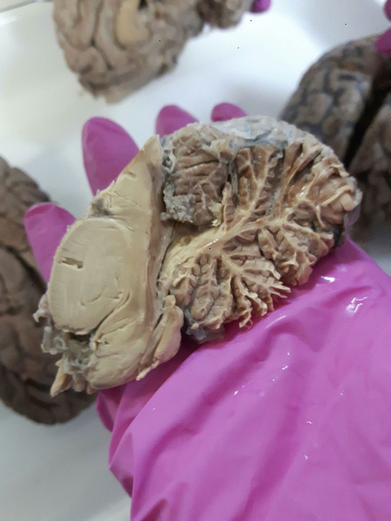 The cerebellum is located behind the top part of the brain stem (where the spinal cord meets the brain) and is made of two hemispheres (halves). The cerebellum receives information from the sensory systems, the spinal cord, and other parts of the brain and then regulates motor movements. The cerebellum coordinates voluntary movements such as posture, balance, coordination, and speech, resulting in smooth and balanced muscular activity. It is also important for learning motor behaviors. It is a relatively small portion of the brain -- about ten percent of the total weight, but it contains roughly half of the brain's neurons, specialized cells that transmit information via electrical signals. The cerebellum is not unique to humans. Evolutionarily speaking, it is an older portion of the brain. It is present in animals that scientists believe existed before humans. Damage to the cerebellum, while not causing paralysis or intellectual impairment, might lead to a lack of balance, slower movements, and tremors (shaking). Complex physical tasks would become unsteady and halting.