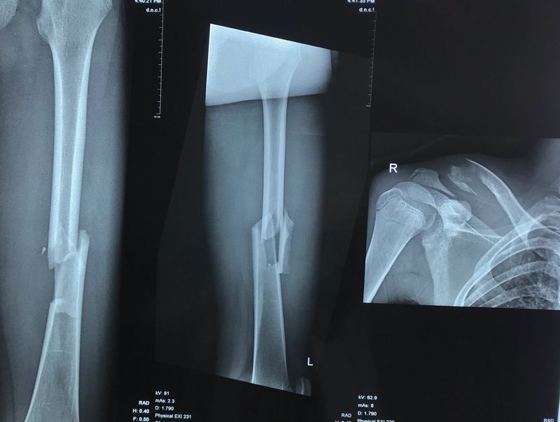 a man had a motorcycle accident, motorcycle collided with a truck. At the time of admission, the patient was compos mentis, gcs 15. However, he experienced limited movement in both hands. Crepitation (+) on the left arm. Open wound (-). Then take a photo of humerus and clavicle. What is the interpretation of the xray or what is the diagnosis?