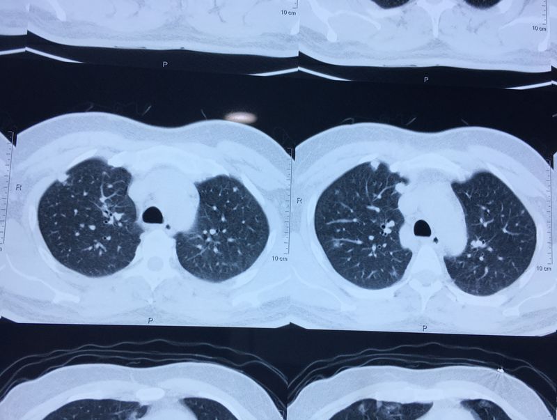 CT lung shows small dots.. that indicates the Metastatic (stage4). USG KUB shows that enlarged prostate. FNAC clarified that the individual is suffering from Prostate cancer.