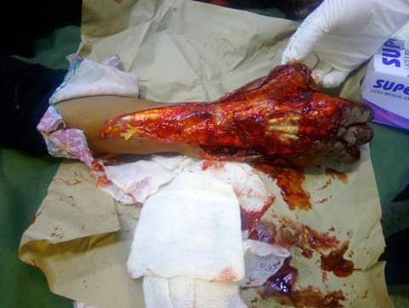She is above 80 years old. When she was crossed the road than she got accident. She has many facture than we referred to the higher centre because her vein and arterys are also damage. But she is conciseness.