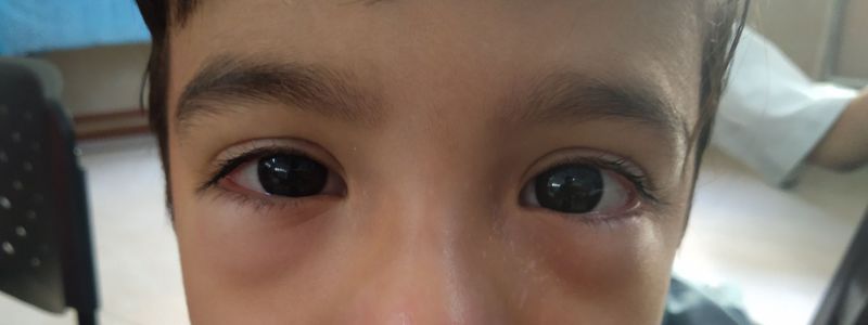 A 5 year old boy went to the medical room in his school with initial swelling in the right eye. The child was given ice cube to reduce the swelling and was sent back to class. After one hour he came back with swelling in both eyes and was advised to go to a hospital. No history of itching, pain, pus, discharge or surgeries. No history of ocular trauma.