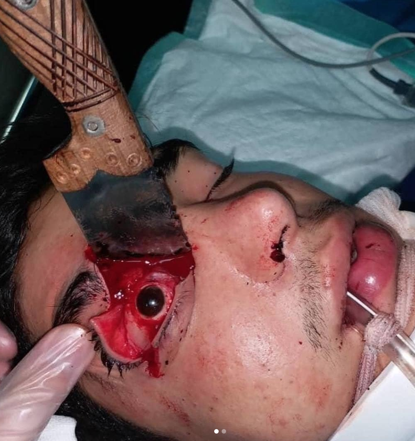 Today we bring a case that surpasses any concept of "luck": this patient carried a stab in the face, and the blade penetrated the medial face of the orbit, but without causing major damage to the patient's eyes. The knife was removed, the patient was sutured and continues to see well! Transorbital penetrating injuries are dangerous as the walls of orbit are very thin, hence easily broken by the otherwise innocent objects. Because of the very critical anatomical area involved, these injuries pose a serious challenge to the treating team and are often associated with serious complications and delayed sequel. Prompt evaluation by utilizing best diagnostic modality available and timely interference to remove them are the key aspects to avoid damage to vital organs surrounding the injury and to minimize the late complications.