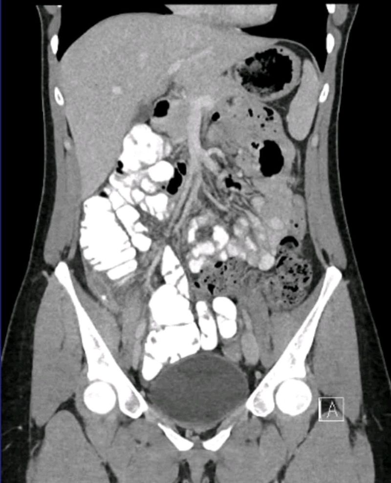 Distended small bowel, potential volvulus
