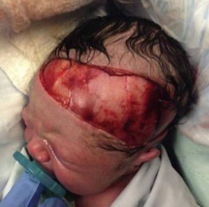 Severe scalp lacreation in a newborn due to cesarean section complications ! Repair of injury was successful with good results.