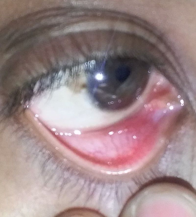 A 21 year old girl come with a symptoms of redness in medial part of lower conjunctiva and it pains on closing the eyelids and tired from morning with whole body pain. What is your Diagnosis Dx??