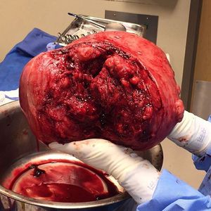 This is a hysterectomy (surgical removal of the uterus) due to fibroids! Uterine fibroids, also called leimyomas or myomas, are non-cancerous (benign) growths that originate in the muscular wall of the uterus. Fibroids are the most common type of tumor found in female reproductive organs. Symptoms vary depending on the size and number of fibroids; heavy and prolonged menstrual bleeding, pain and pressure in lower abdomen, constipations and urination controlling problems. The surgical treatment is shown here, total hysterectomy, is done in rare cases where the fibroids are too huge and resist hormonal medical treatment. Photo by @jayna219