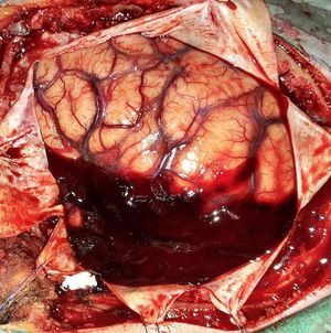 This is, no doubt, among the deadliest of all head injuries. It occurs not only in patients with severe head injury but also in patients with less severe injuries, particularly those who are elderly or receiving anticoagulants. The bleeding fills the brain area, compressing brain tissue. It also leads to increased intracranial pressure and edema of the brain, which decreases the cerebral perfusion pressure, leading to further ischemia, edema and eventual brain herniation and death if left untreated. In a chronic subdural hematoma, small veins on the outer surface of the brain may tear, causing a gradual and slow bleeding in the subdural space, which can hide symptoms for several days or weeks. Small subdural hematomas can be managed by careful monitoring until the body heals itself. Other small subdural hematomas can be managed by inserting a temporary small catheter through a hole drilled through the skull and sucking out the hematoma. The big ones require surgery. This picture shows the skull wide open with the brain completely exposed after performing a craniotomy and the hematoma being carefully evacuated.Photo by @luqueleopoldo