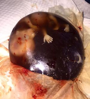 An unfortunate case of a miscarriage due to pregnancy complications with the baby still wrapped in his protective and unbroken amniotic sac. Photo by @rasty.nawroz11