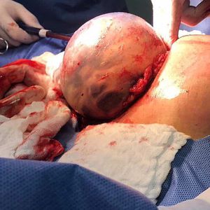 This little guy emerges from the womb out to the wide world still in his protective amniotic sac looking like an astronaut. Photo by @dralarcon