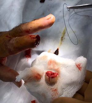Car door finger amputation! (Videos will be posted next). Here we have the case of a 65-year-old man who suffered a transverse amputation of the distal portion of the second finger on the left hand. This happened accidentally when a friend closed the car door and his hand was caught in the way. After initial evaluation of the patient it was decided that the best initial management besides pain medications & antibiotics, was to suture the finger tip back together as a temporary measure. This was done due to 3 main reasons, to control the bleeding, to build a barrier against infections, and due to the lack of a specialist at the hospital the time he arrived. The proper treatment in the case of this patient is a procedure called V-Y Plasty which is a specialized technique that will give the patient a more functional & aesthetic look to his finger. Patient was oriented that the tip of the finger will fall off due to the lack of blood flow and that proper specialty care is needed for his particular situation. Case by @dr.johnmarti