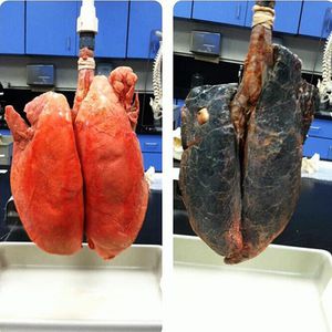 This is what bad habits such as smoking does to the respiratory system! Lungs can be very badly affected by smoking, this image demonstrates the effects pretty well! Coughs, colds, wheezing, chronic bronchitis and asthma are just a tiny portion of a long list of conditions. Fatal diseases such as pneumonia, emphysema and lung cancer are frequently the leading cause of mortality. Cigarettes smoke chemicals are interfering with the body's ability to filter air and cleaning out the lungs. It also irritates and paralyzes the cilia-tiny hair-like structures that line the airways and clean out dust and dirt along with over-production of mucous. This extra mucus means smokers are more likely to suffer from chronic bronchitis and what is known as 'smoker's cough'.Emphysema is another condition in which long-term smoking gradually damages and causes over-inflation of the alveoli, leading to shortness of breath due to reduced amount of lung tissue available for the transfer of oxygen from the air to the blood.The bright side is, that many diseases caused by smoking are actually reversible!