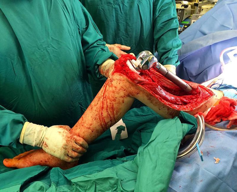 Incredible! When it comes to an endoprothesis in our hospital (elective surgery in btw.) I’m always afraid of infections (low grade etc...). It’s incredible how a total femur replacement works: i wonder how you deal with all the muscles, especially with the M. quadriceps femoris or the adductors (like the canalis adductorius with the A./V./N. femoralis). How long is the total operation time? Are there a lot of infections? Is it always fixed with cement?