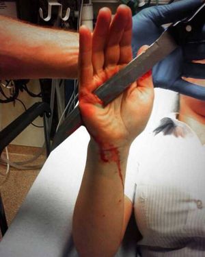 The woman was allegedly trying to split burgers apart when her knife slipped and stabbed her hand. She fortunately missed all the tendons so she will likely regain full sensitivity of her hand after it heals.