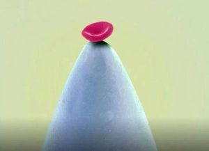 Awesome scanning electron micrograph of a single red blood on the tip of a needle.
