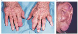 1) Osteoarthritis 2) Psoriatic arthropathy 3) Rheumatoid arthritis 4) Sarcoidosis 5) Tophaceous gout