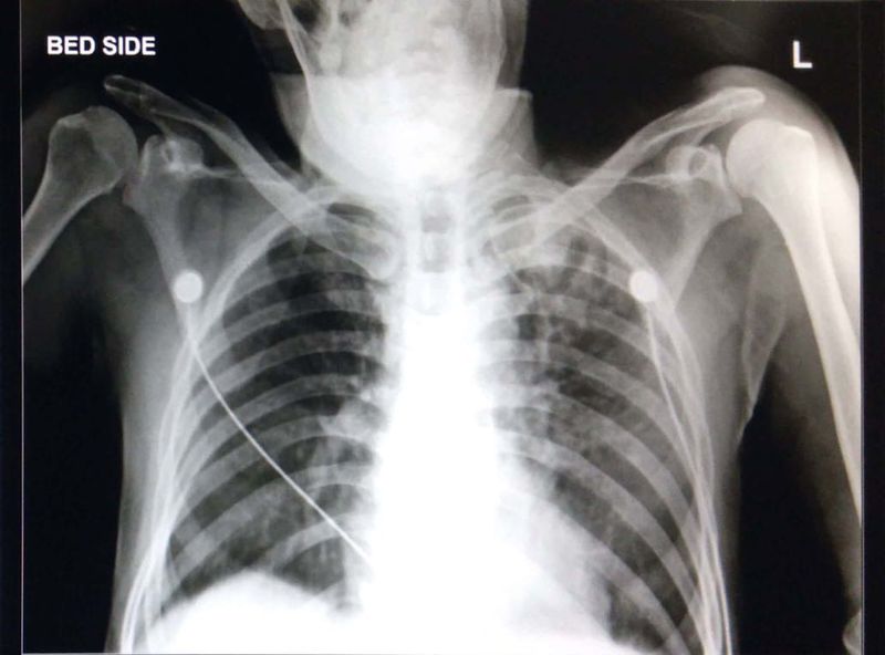 What is the diagnosis?! Patient was thrombolysed with reteplace and 10mins apart patient had blood vomiting.... is it the complication after the thrombolysis or is it tuberculosis or tumour or anything else?!