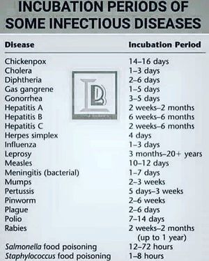 Incubation period of infectious diseases