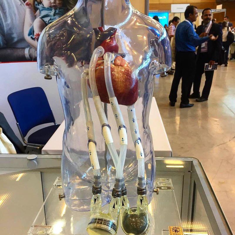 An artificial pediatric ventricle presented in Barcelona at the world congress of pediatric cardiac surgery!! The device, called total artificial heart, uses synthetic pumping chambers to replace the diseased and failing left and right ventricles of the recipients own heart. The artificial heart is designed to be used temporarily until a donated heart is available, and recipients have to remain in hospital while the heart is fitted, in some cases as long as two and a half years. The artificial heart is used only in patients who have both ventricles failing and enables 80% of them to survive long enough to receive the donated heart. Innovation at its finest¸ Photo by @dr_wanderley