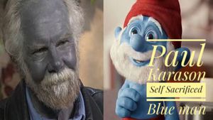 He started drinking colloidal silver to help with dermatitis on his face. The silver built up in his skin and when exposed to sunlight turns blue.