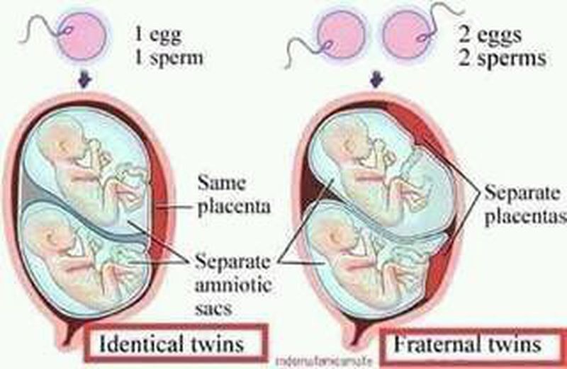 Identical twins are formed from a single egg and single sperm while fraternal takes two eggs and sperms