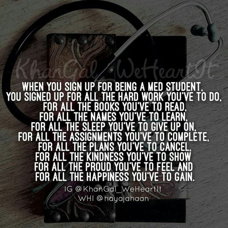 Listen... Just listen... You'll hear people complain about the teachers because they want to be spoon fed. Complaining about the subjects because it's tough but the truth is... They spent their weekends partying, playing video games or watching dramas instead of studying. Complaining about not getting enough sleep but they want to become a doctor where staying up all night to save a patient's life is the norm... Choosing medicine means that you are fully committed and will do whatever it takes to become a great doctor. You'll be handling lives, study like it!
