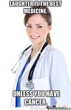 The doc ist sweet bis laughing and happyness is good for everyone, especially in case of cancer.. ❤️