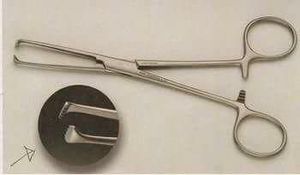 What is the name of this surgical instrument? A. Allis tissue forceps B. Towel clamp C. Kocher's forceps D. Needle holder